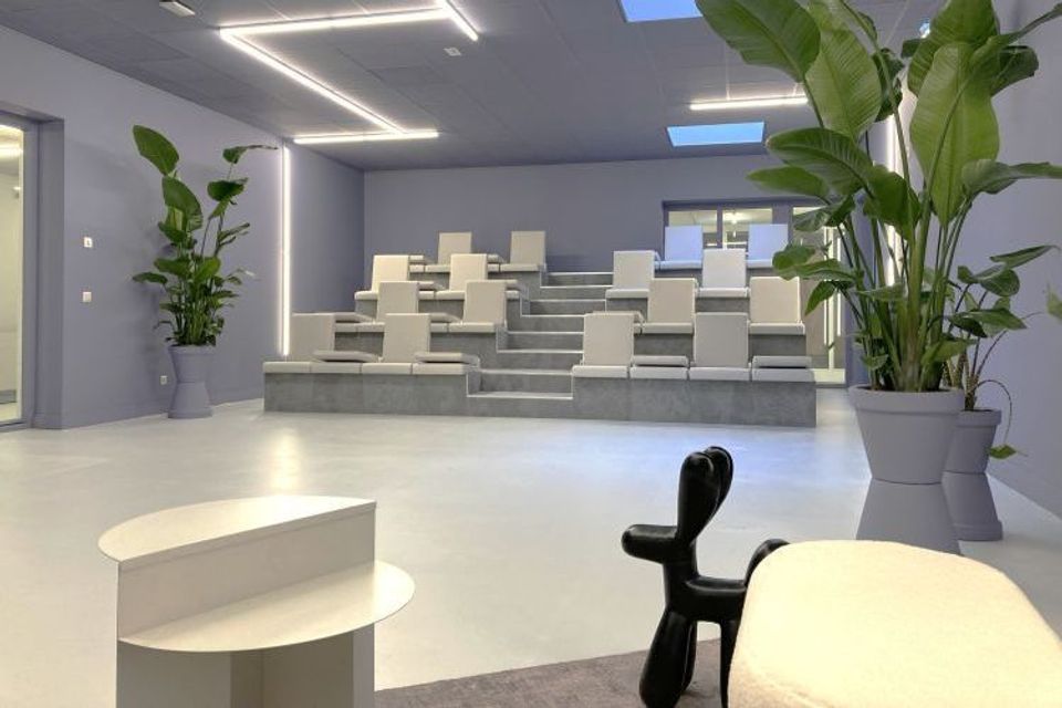 Terugkomend op The Classroom, wat kan men hier verwachten? Marco: “Om te beginnen heeft deze ruimte vanaf onze centrale lounge een eigen gang met entree. Dat is stijlvol binnenkomen en geeft alvast de sfeer weer van wat je in The Classroom kunt verwachten. Het auditorium biedt 32 vaste zitplaatsen, maar ben je met minder personen dan kunnen er ook stoelen worden omgeklapt tot tafeltjes. Je kunt ook draadloos presenteren op de hightech 4k-beamer. Verder is deze ruimte gehuld in prachtige lila kleuren, strakke belichting en mooie beplanting. Maar dan wel met een knipoog naar een feestje, de spiegelbollen uit de 80’s passen namelijk zó leuk in dit plaatje dat we die ruim hebben toegevoegd, samen met nog wat andere grappige gimmicks zoals oude schoolposters. Beter kan je het zelf komen ervaren!”