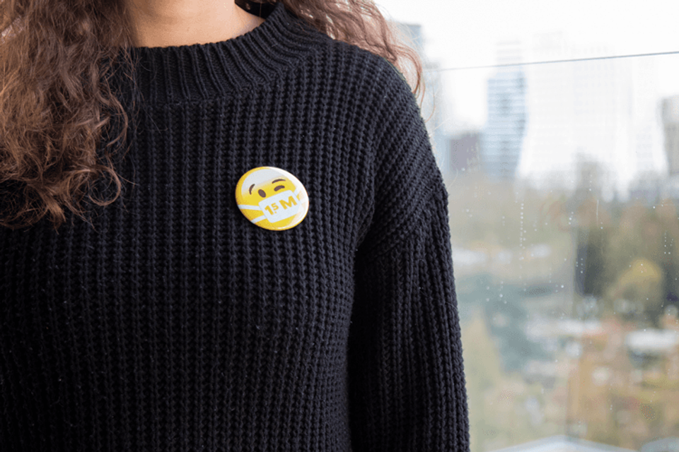 Jammer genoeg is het nog even wachten voordat we weer drie kussen of een dikke knuffel kunnen geven. Willen we dat vreselijke virus verslaan, dan zitten we voorlopig vast aan die anderhalve meter afstand. En om die regel nog maar eens kracht bij te zetten werd deze ludieke button in het leven geroepen. Zodat je op een vriendelijke manier duidelijk kunt maken dat je je graag aan deze regel houdt. Een ideaal product voor o.a. supermarkt- en winkelmedewerkers, koeriers, bezorgers en leraren die straks de schoolexamens moeten afnemen.