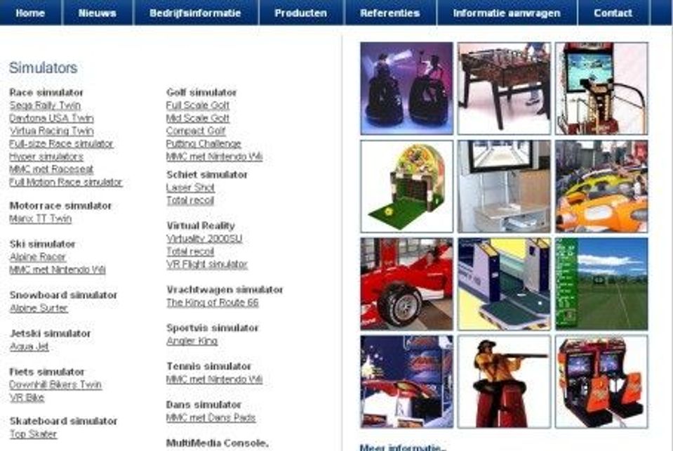 Onder de rubriek ‘Producten’ is het aanbod aan simulators overzichtelijk gerangschikt. Daarnaast kan de bezoeker op de nieuwe website gemakkelijk informatie vinden over het bedrijf, informatie aanvragen en referenties bekijken.