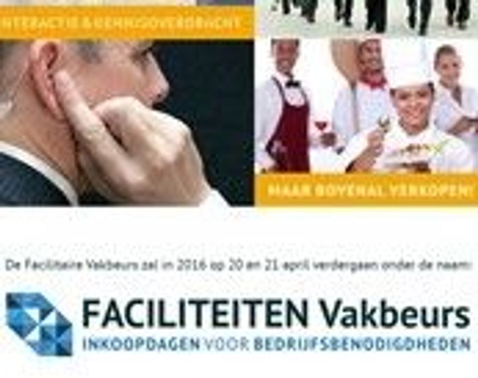 De Facilitaire Vakbeurs zal in 2016 op 20 en 21 april verdergaan onder de naam: Faciliteiten Vakbeurs, Inkoopdagen voor Bedrijfsbenodigdheden. Vier nieuwe omgevingen, zijnde Werkplek en Inrichting, Huisvesting en Gebouwbeheer, Veiligheid en Bescherming en Promotie en Communicatie, moeten inkopers van het groot-, midden- en kleinbedrijf prikkelen om de vakbeurs te bezoeken in de RAI Amsterdam. […]